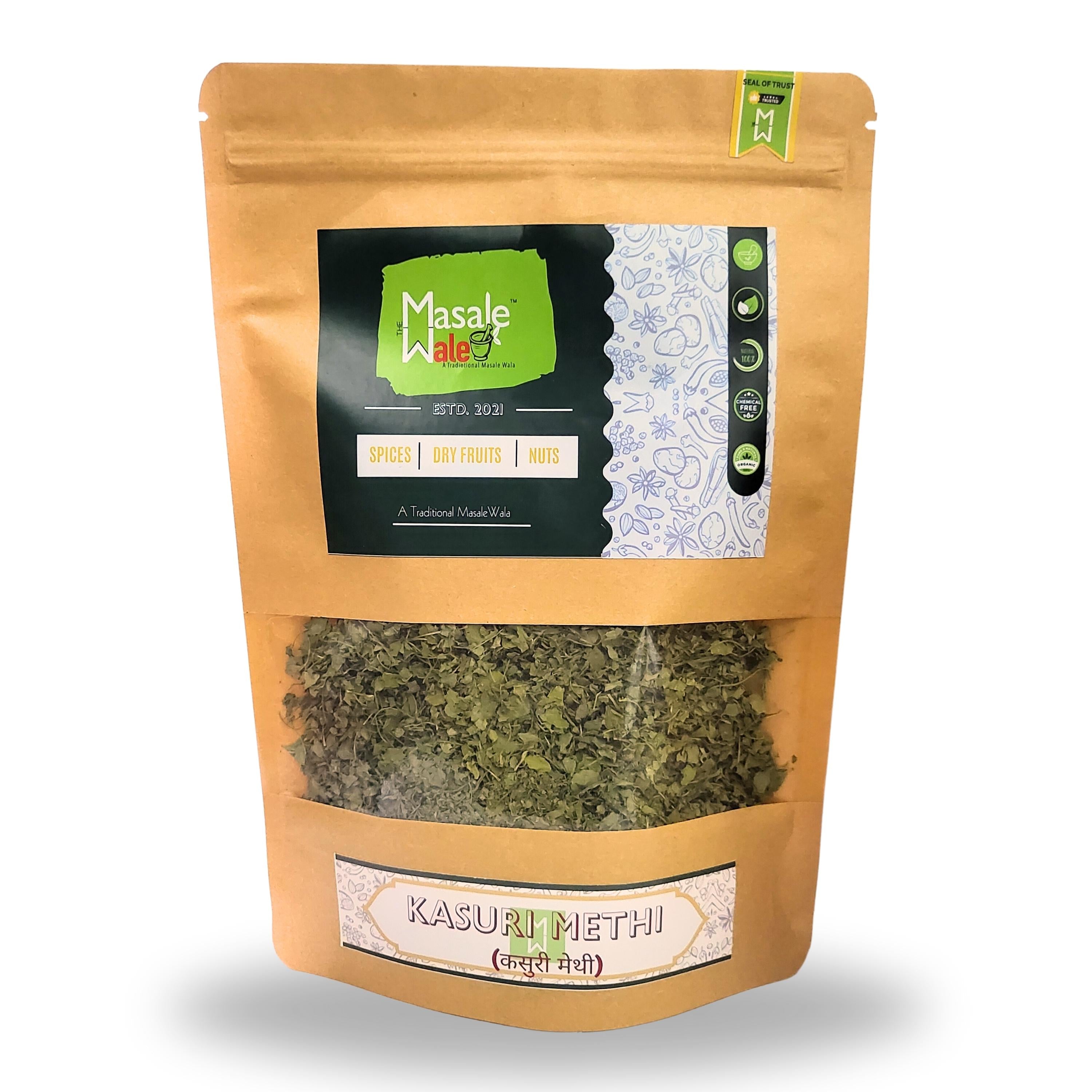 Experience the irresistible aroma and taste of 100% natural Kasoori Methi by THE MASALEWALE! Sourced from the finest sun-drenched fenugreek leaves, our premium-quality herb brings an authentic touch to your culinary creations. With no additional flavors or colors, this pure and natural Kasoori Methi is the perfect choice to enhance the richness of your dishes. Add a pinch of our select seasoning to elevate the flavors and make every meal a memorable experience.