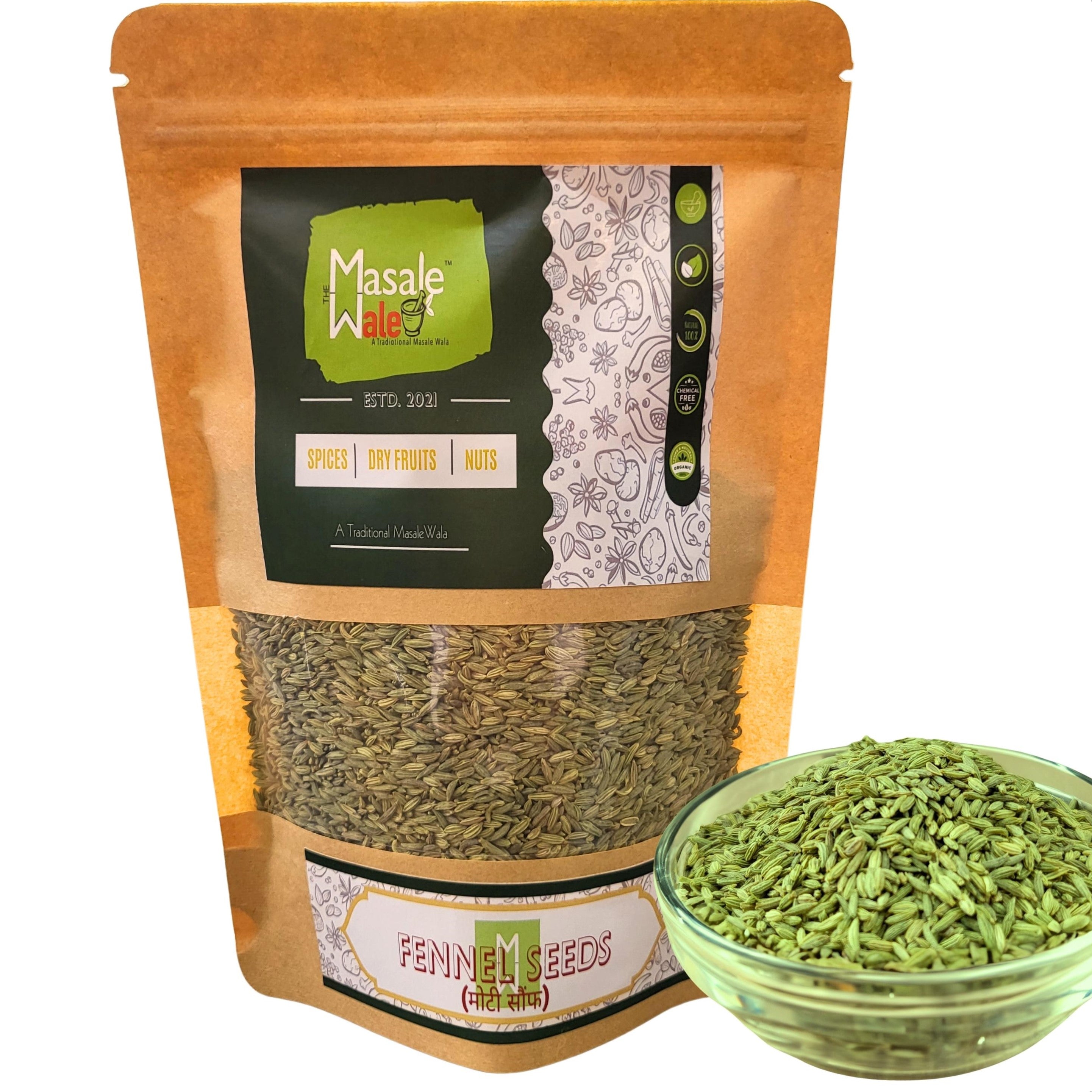 Indulge in the exotic, aromatic flavour of our 100% Authentic Fennel Seeds by THE MASALEWALE. Handpicked for excellence, these sundried gems come straight from our organic farms to your kitchen. Offering a blend of sweet, grassy taste with a hint of anise, our Fennel Seeds are not only an essential culinary spice but also a renown herbal supplement for digestion. Infuse the natural green goodness into your recipes and feel the magic of premium quality with every bite.